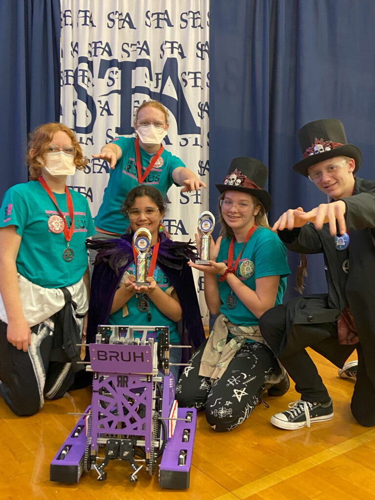Our team is all about learning, having fun, and pushing the limits of what we can do with robotics. Whether we’re brainstorming ideas, coding solutions, or tweaking our robot to perfection, we’re giving it our all and supporting each other every step of the way. Together, we’re problem-solvers, inventors, and future engineers, and we can’t wait to see what we’ll achieve this season!